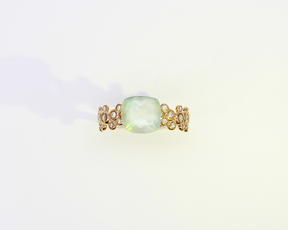 石座の形はルースの形状にも左右されますが、全体を見て美しくまとまるスタイルをご提案させていただきながら